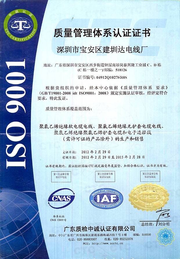 建圳達電纜立足于中國深圳,擁有技術(shù)精湛的隊伍、現(xiàn)代化生產(chǎn)設(shè)備、精密的檢測儀器,從原材料、生產(chǎn)、成品嚴(yán)格按照國家標(biāo)準(zhǔn)檢測,通過多個認證。